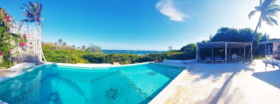 Swimbo House is self-catering. Sleeps 8-10 people. Has private access to the beach 100m away. Perfect for families or friends. 2 Large King size bedrooms, 1 double, 2 tiny kids/teens rooms. 4 Bathrooms, with shower. Can cater for events up to 45 people.